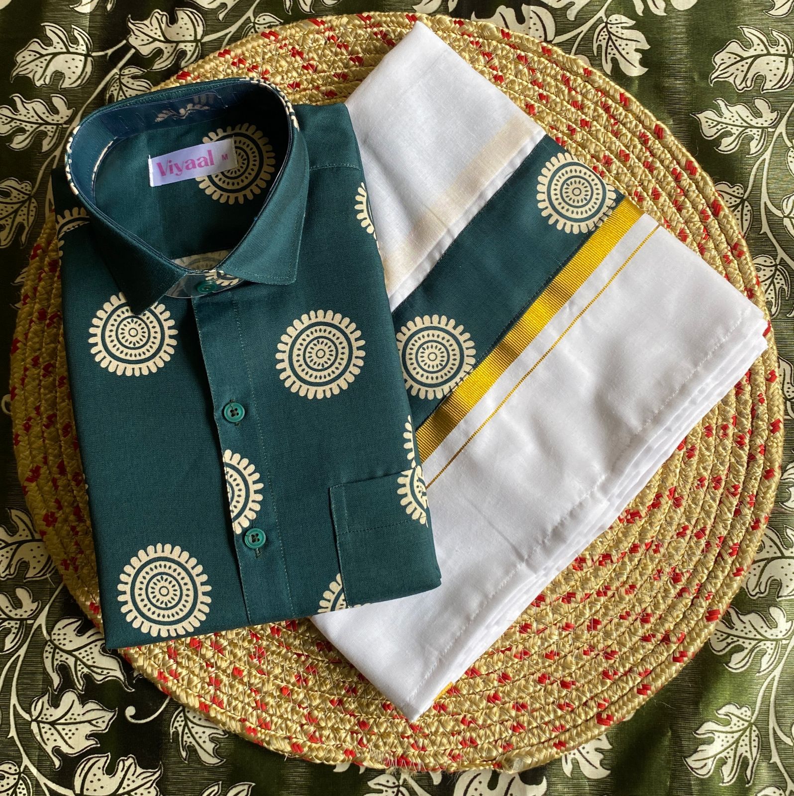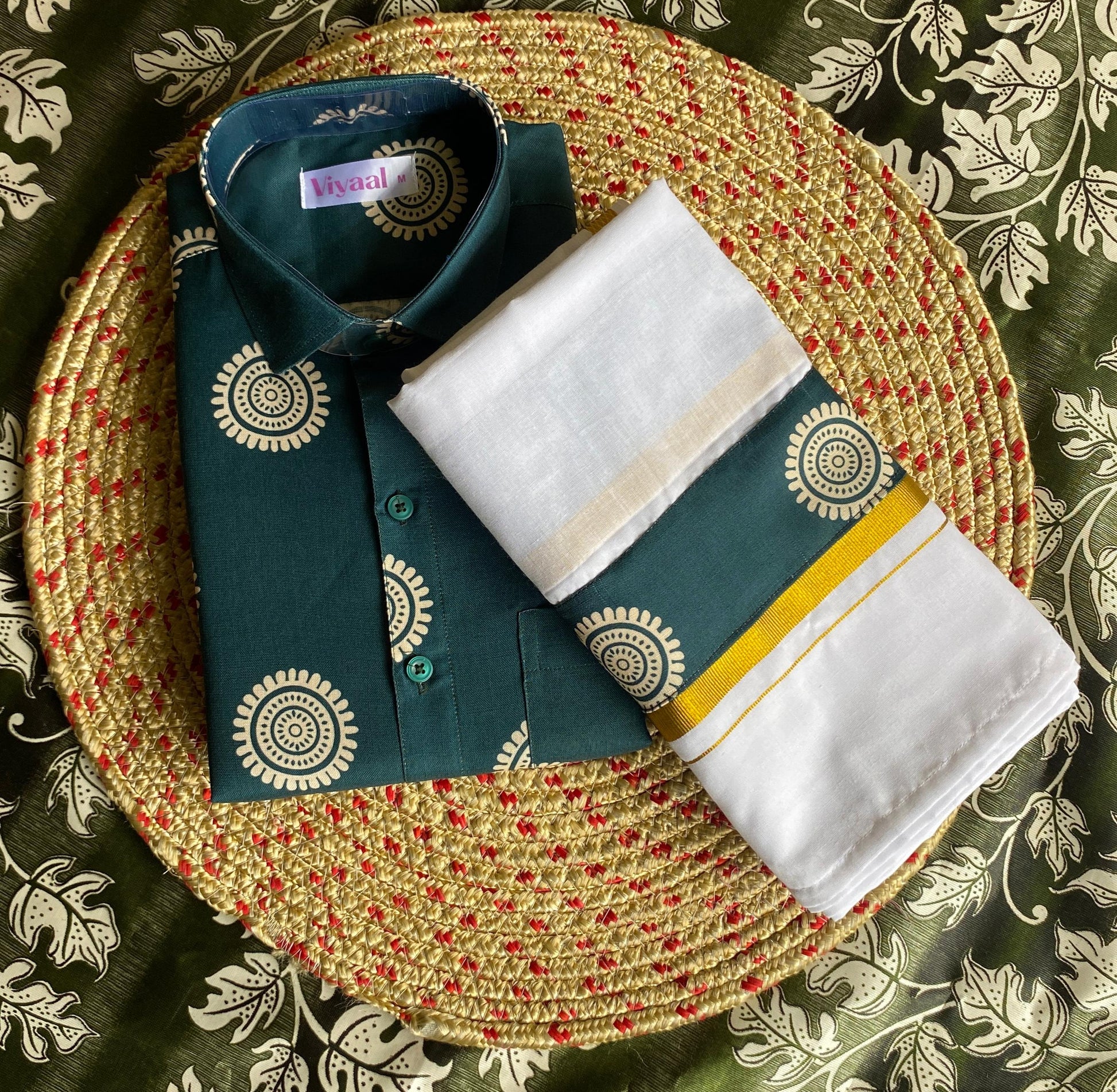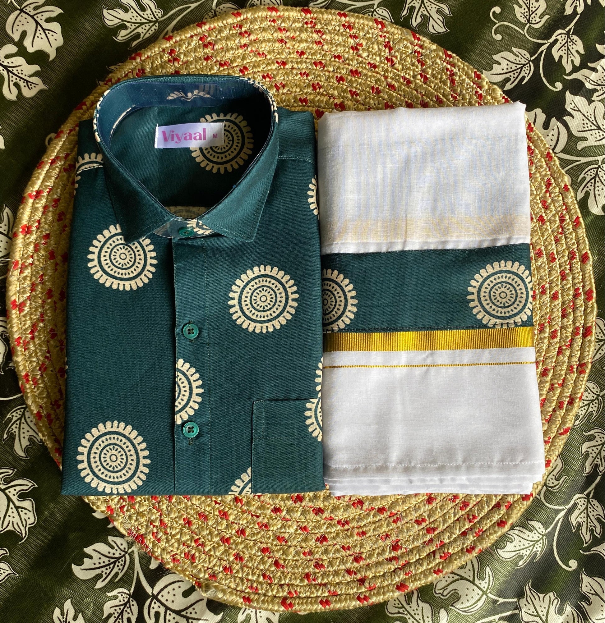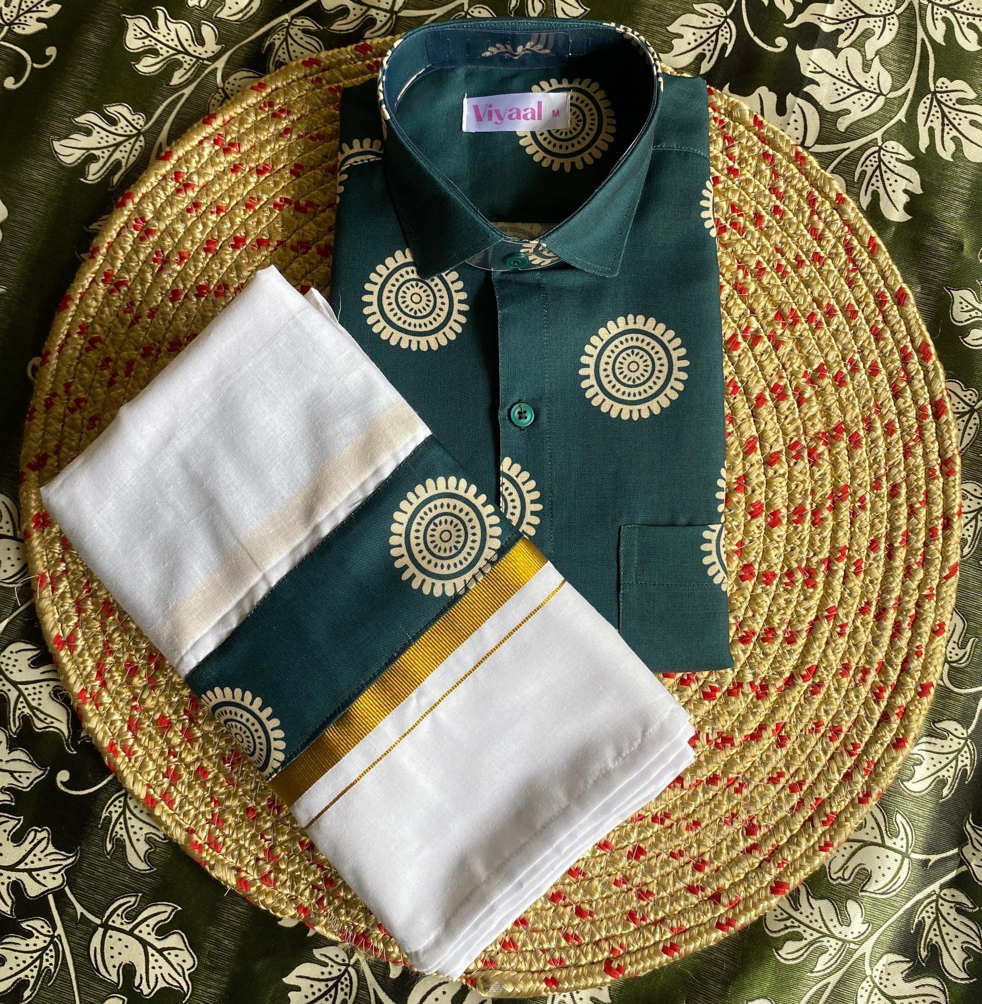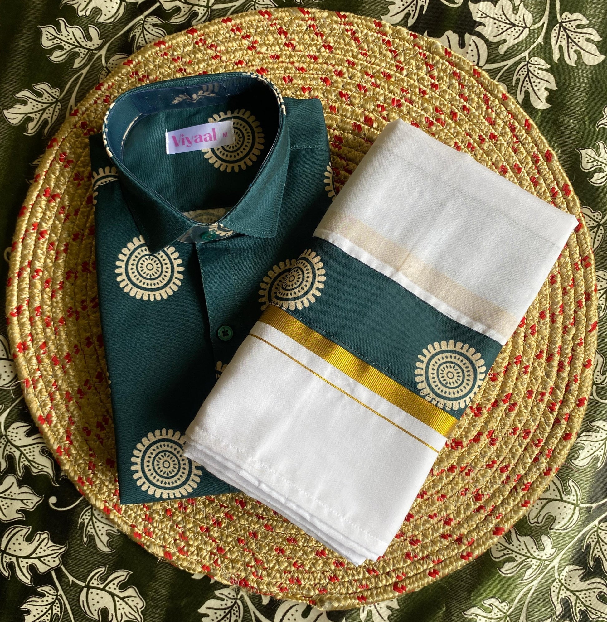 “Step into a world where tradition meets contemporary elegance with this meticulously crafted Dhothi & Shirt set. The Dhothi is made from soft, breathable fabric that drapes effortlessly, providing unmatched comfort while maintaining a timeless appeal. Complementing it is a finely tailored shirt, crafted from premium material—be it crisp cotton, lustrous silk, or smooth satin—designed to offer a perfect fit and subtle sheen. The shirt is enhanced with intricate border detailing along the collar, sleeves, and placket, reflecting careful craftsmanship and attention to every nuance of style. Ideal for festivals, weddings, religious ceremonies, or special occasions, this ensemble balances sophistication and ease, ensuring you look refined while enjoying comfort throughout the day. Its versatile design allows it to be paired with a variety of accessories, making it a wardrobe essential for the modern yet traditional man. Elevate your ethnic wardrobe with this Dhothi & Shirt set that exudes grace, heritage, and understated luxury.”