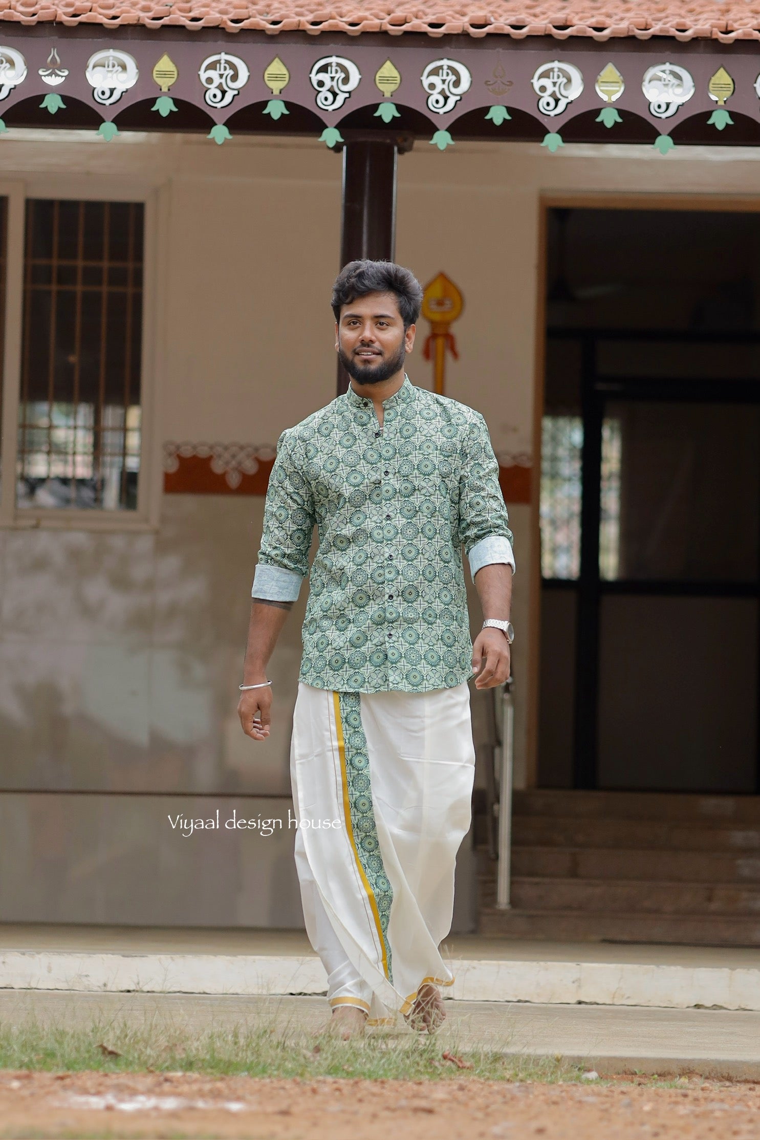 Our dhotis come with a neat, classy finish, perfectly matching the printed shirts to create a complete festive outfit that is both elegant and eye-catching. Whether it’s for family functions, temple visits, or Pongal celebrations, these sets offer the ideal mix of culture, comfort, and contemporary fashion. Step into the season with confidence—simple, stylish, and made for the Pongal vibe.