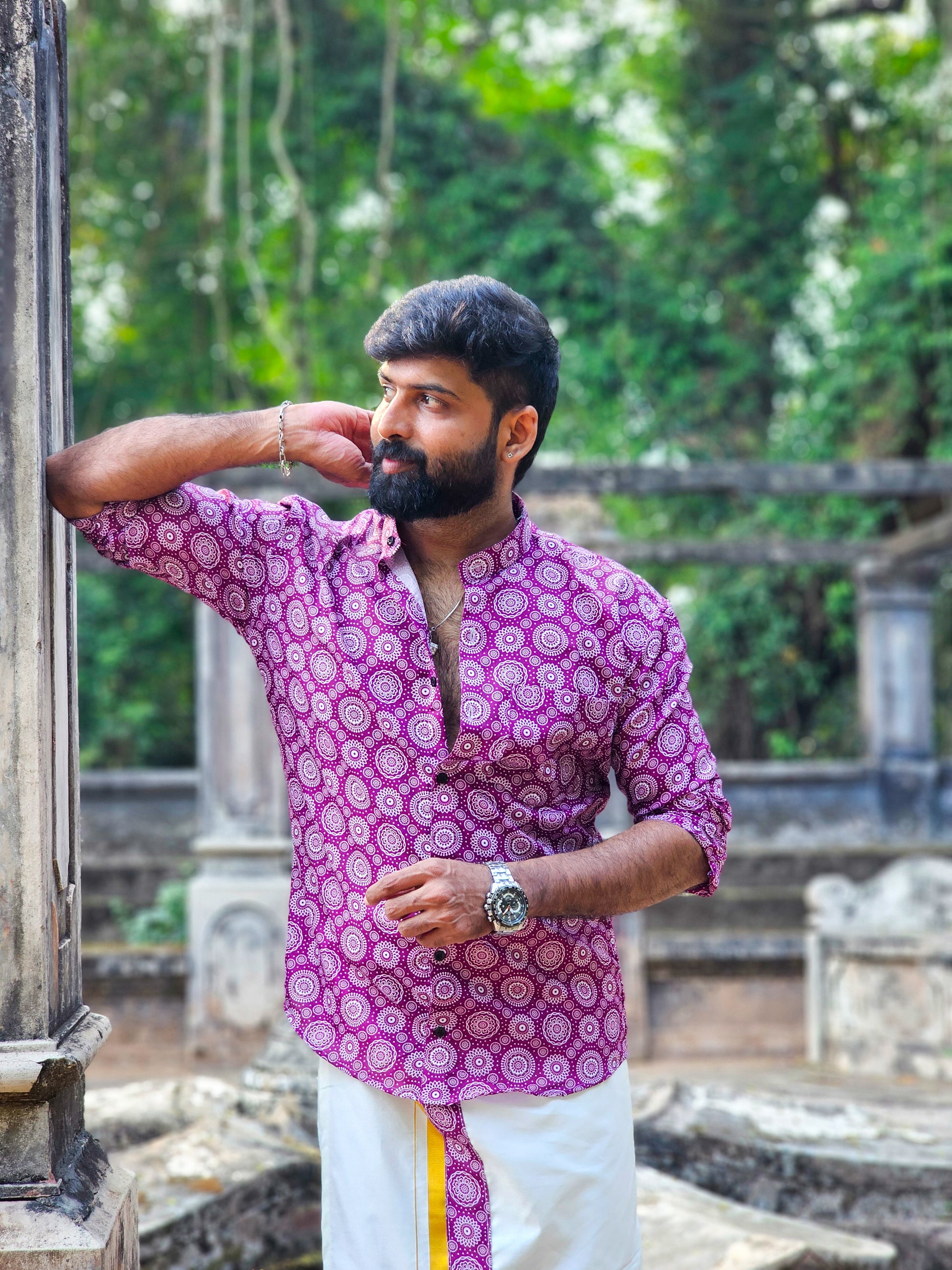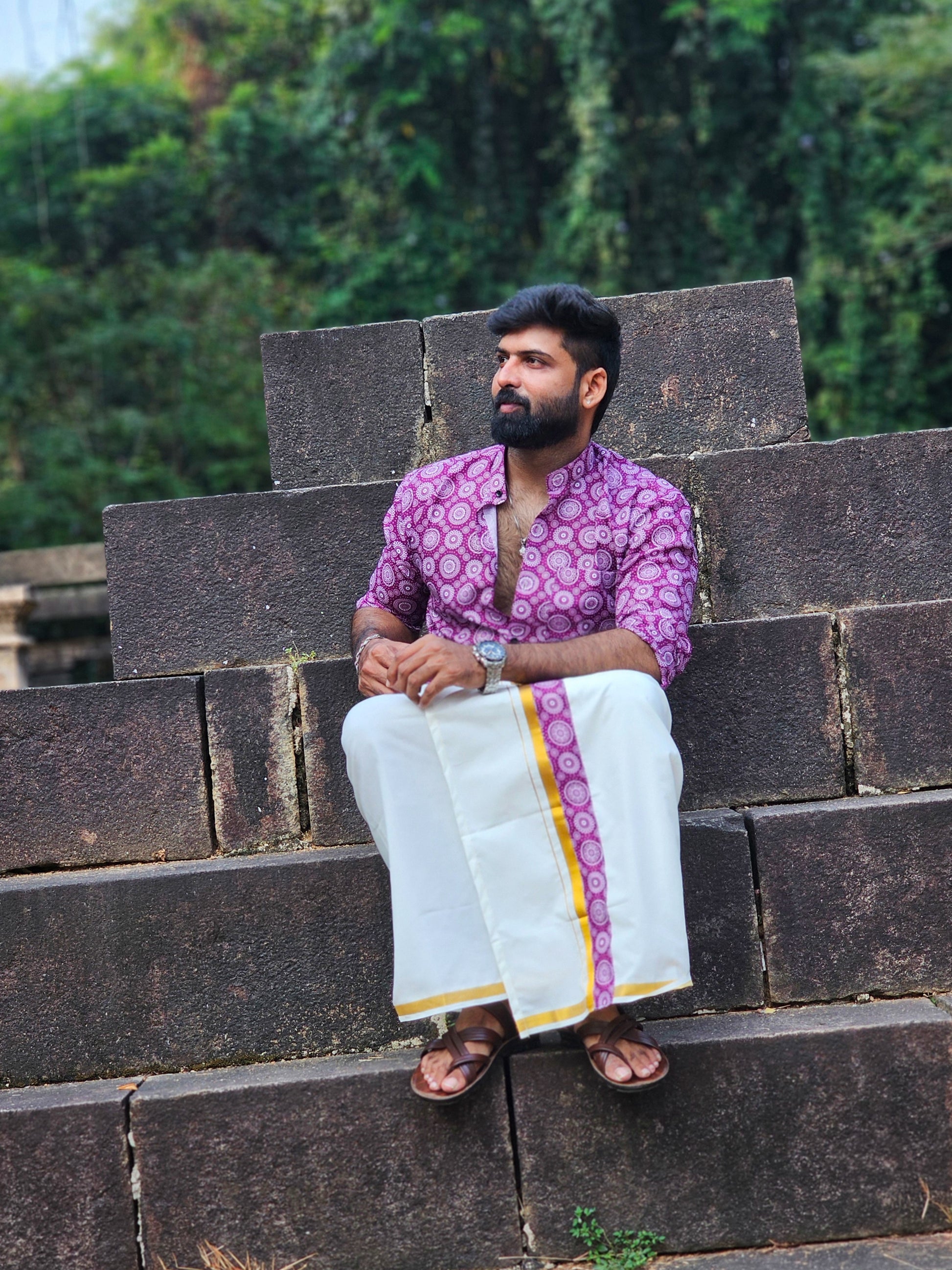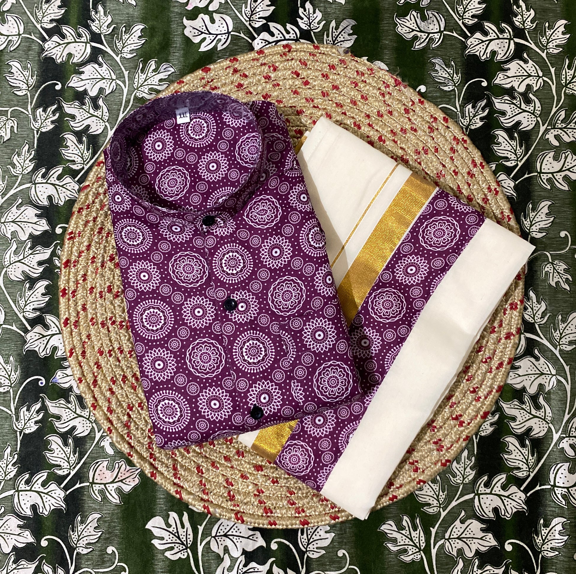 “Step into a world where tradition meets contemporary elegance with this meticulously crafted Dhothi & Shirt set. The Dhothi is made from soft, breathable fabric that drapes effortlessly, providing unmatched comfort while maintaining a timeless appeal. Complementing it is a finely tailored shirt, crafted from premium material—be it crisp cotton, lustrous silk, or smooth satin—designed to offer a perfect fit and subtle sheen. The shirt is enhanced with intricate border detailing along the collar, sleeves, and placket, reflecting careful craftsmanship and attention to every nuance of style. Ideal for festivals, weddings, religious ceremonies, or special occasions, this ensemble balances sophistication and ease, ensuring you look refined while enjoying comfort throughout the day. Its versatile design allows it to be paired with a variety of accessories, making it a wardrobe essential for the modern yet traditional man. Elevate your ethnic wardrobe with this Dhothi & Shirt set that exudes grace, heritage, and understated luxury.”