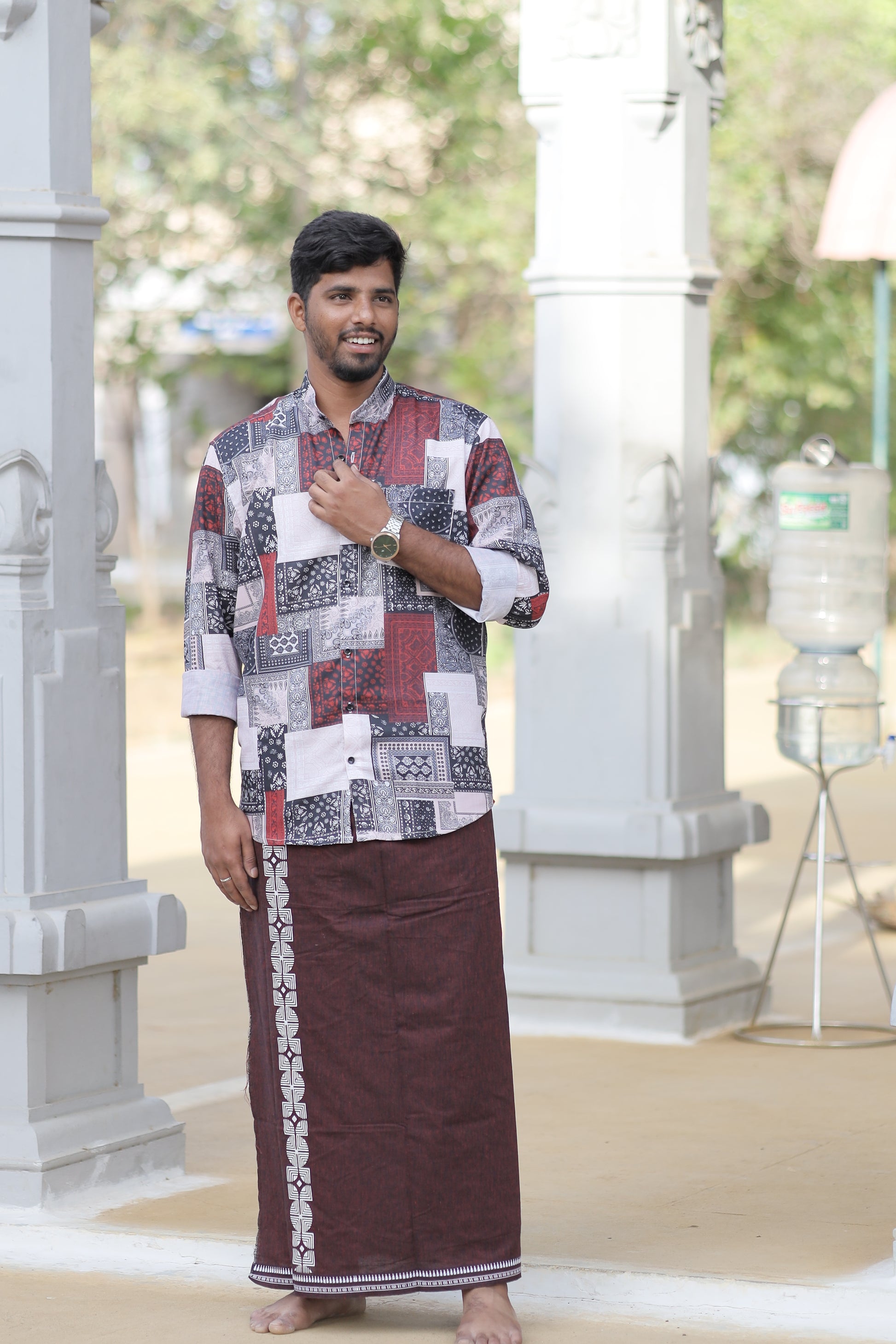 Step into a world where tradition meets contemporary style with our exclusive Shirt and Fancy Dhoti Collection. Each piece in this collection is thoughtfully designed to offer a perfect blend of elegance, comfort, and cultural richness. Our shirts are crafted with premium fabrics that ensure breathability and softness, featuring meticulous stitching and subtle design elements that make them versatile for both casual outings and special occasions. Complementing these are our fancy dhotis, which embody the timeless charm of classic Indian wear while embracing modern aesthetics. From intricate borders and traditional motifs to vibrant colors and subtle patterns, every dhoti is a statement of heritage, crafted to drape gracefully and enhance your silhouette. This collection is ideal for festive celebrations, religious ceremonies, or simply making a style statement that honors your roots. By pairing these shirts with our designer dhotis, you experience not just clothing but a celebration of craftsmanship and culture.