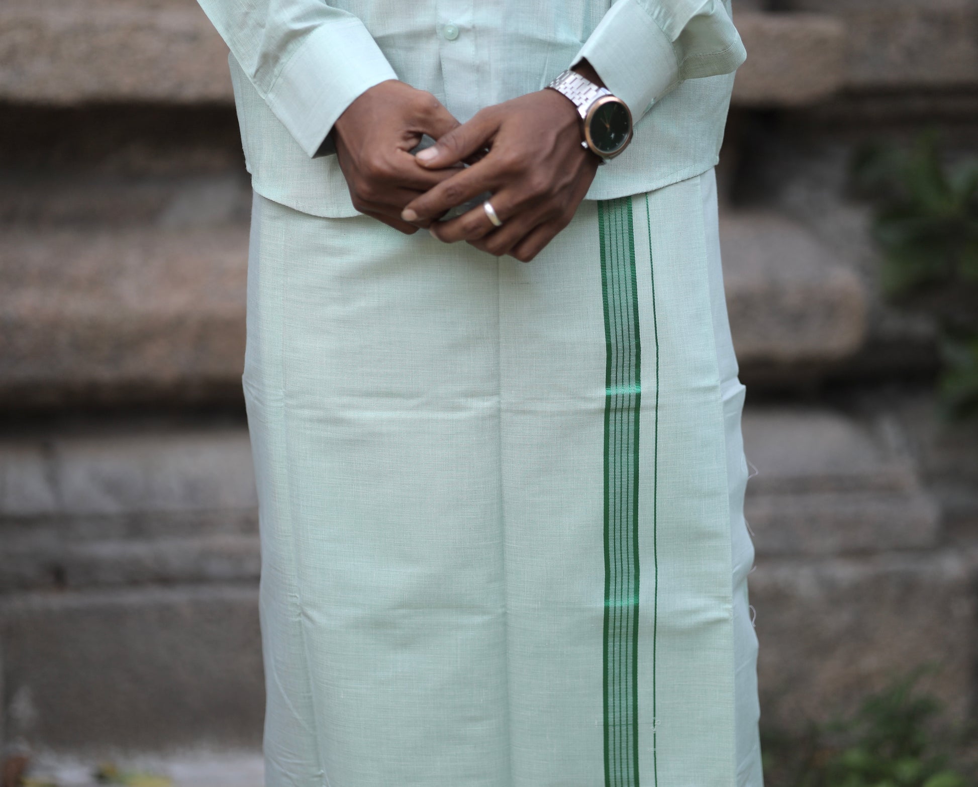 Look traditional and elegant in this Men's Tissue Full Sleeves Shirt and Dhoti Set. Crafted from lightweight tissue fabric, it offers a subtle sheen and a comfortable fit-perfect for festivals, weddings, and poojas. A timeless ethnic wear choice for every special occasion.