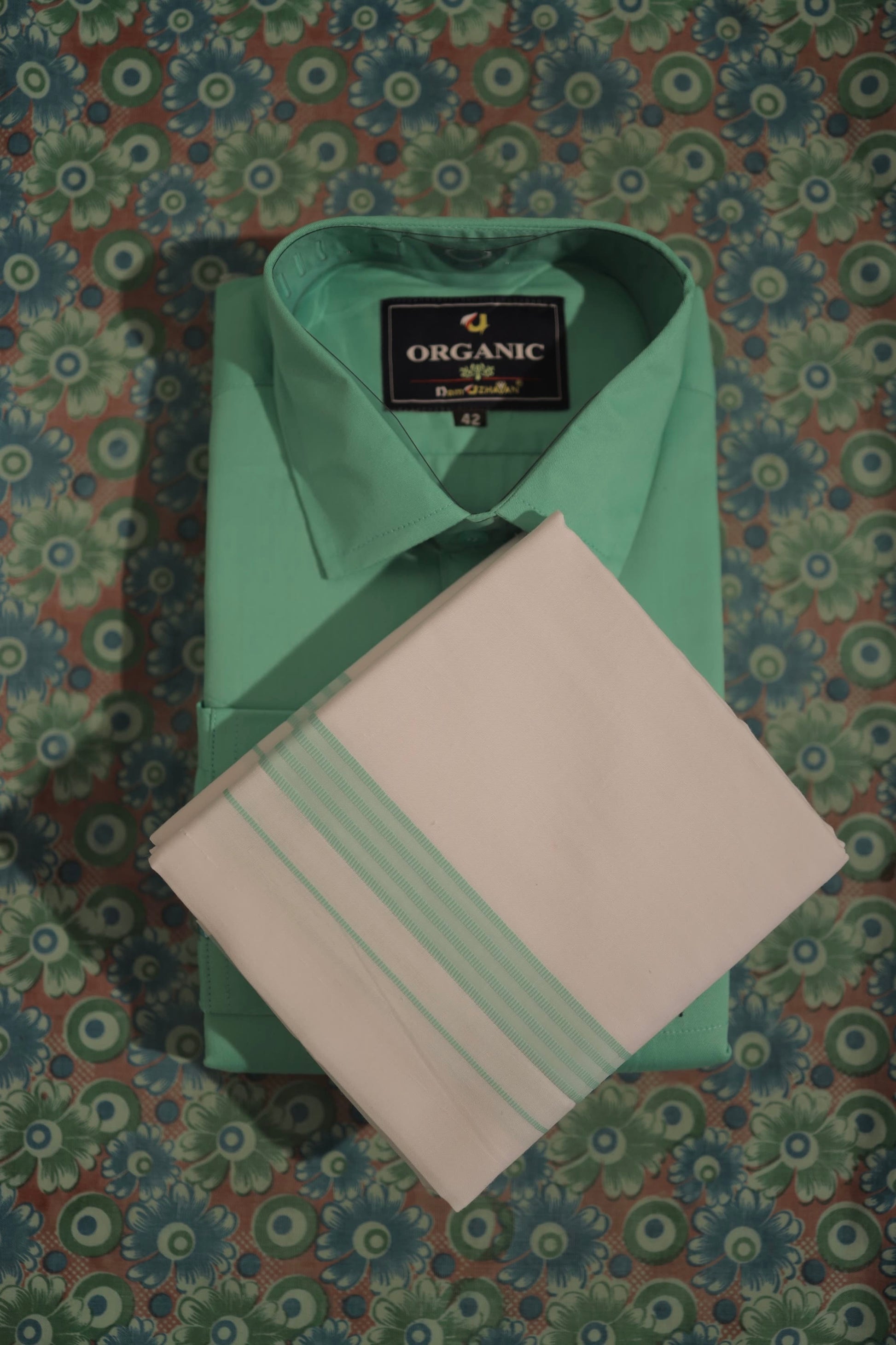 Organic cotton men’s shirt and matching border Dhoti sit