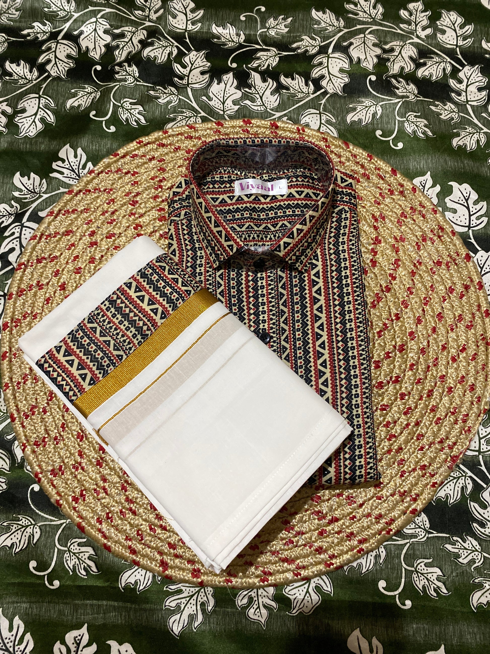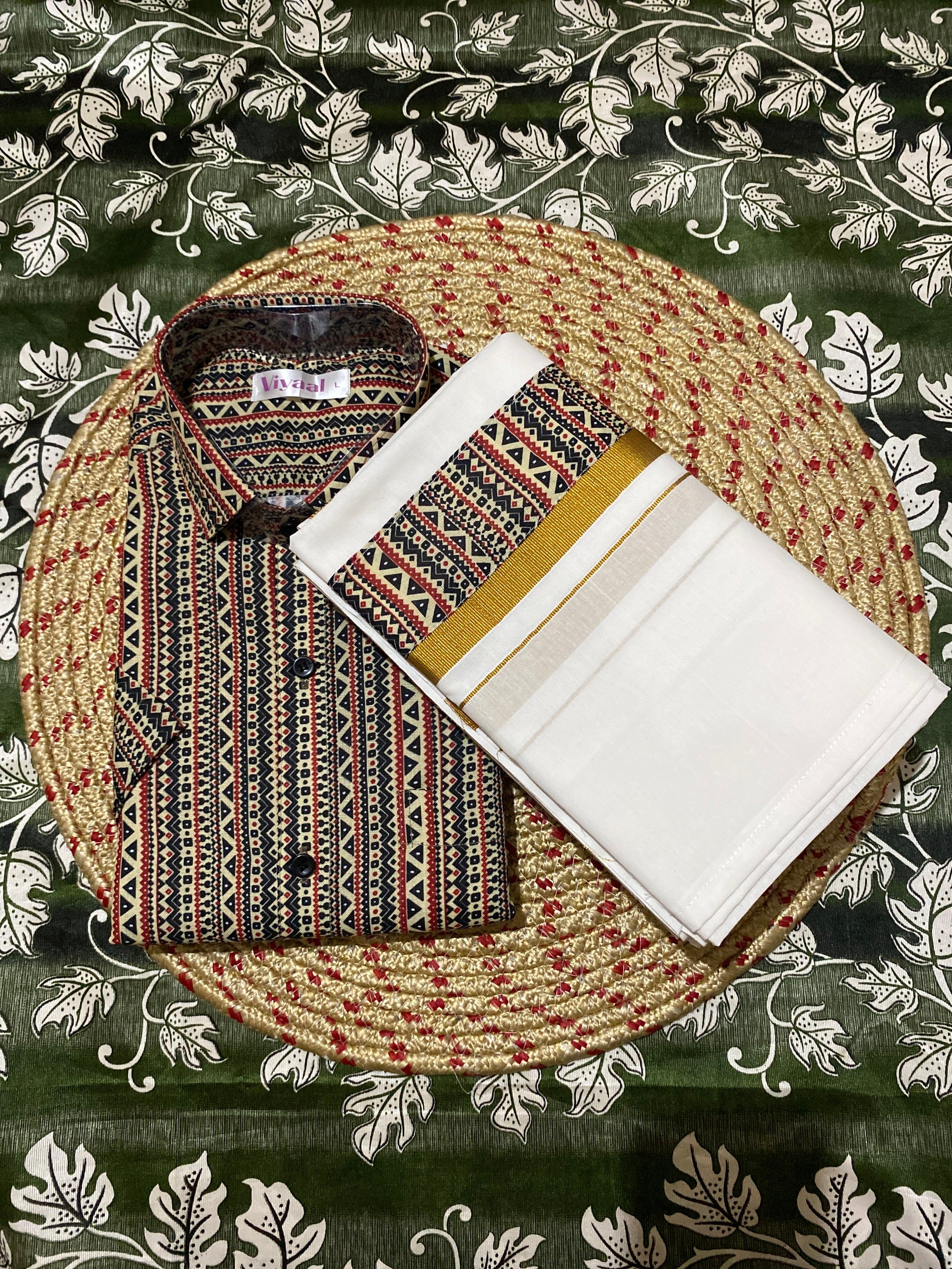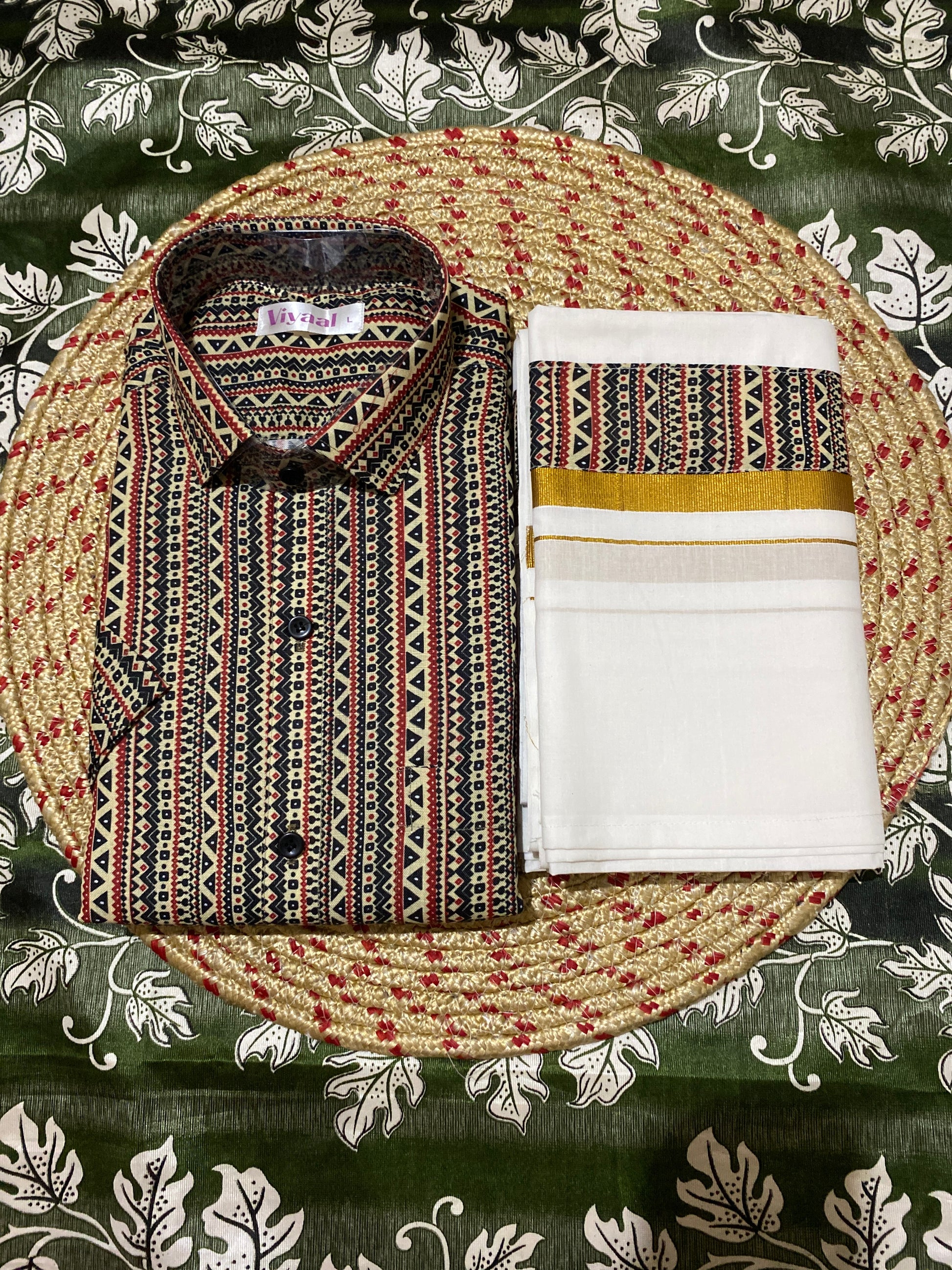 “Step into a world where tradition meets contemporary elegance with this meticulously crafted Dhothi & Shirt set. The Dhothi is made from soft, breathable fabric that drapes effortlessly, providing unmatched comfort while maintaining a timeless appeal. Complementing it is a finely tailored shirt, crafted from premium material—be it crisp cotton, lustrous silk, or smooth satin—designed to offer a perfect fit and subtle sheen. The shirt is enhanced with intricate border detailing along the collar, sleeves, and placket, reflecting careful craftsmanship and attention to every nuance of style. Ideal for festivals, weddings, religious ceremonies, or special occasions, this ensemble balances sophistication and ease, ensuring you look refined while enjoying comfort throughout the day. Its versatile design allows it to be paired with a variety of accessories, making it a wardrobe essential for the modern yet traditional man. Elevate your ethnic wardrobe with this Dhothi & Shirt set that exudes grace, heritage, and understated luxury.”